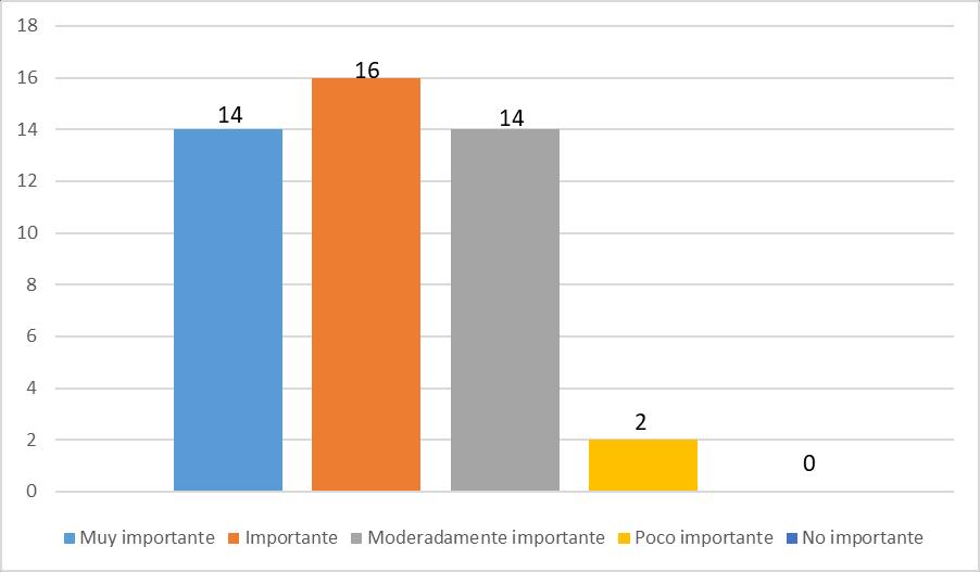 La Figura 1 muestra que los estudiantes otorgan importancia al uso de aplicaciones educativas debido a que el mayor número de respuestas se encuentra en las secciones de ‘muy importante’, ‘importante’ y ‘moderadamente importante’. Por otro lado, únicamente dos alumnos lo consideraron poco importante, resultado que es bajo con respecto al número total de participantes, que fueron 46 alumnos. Así mismo,sepuedeobservarqueningúnalumno seleccionó la opción ‘no importante’, lo cual refuerzalahipótesisqueatribuyeimportancia a las aplicaciones educativas.