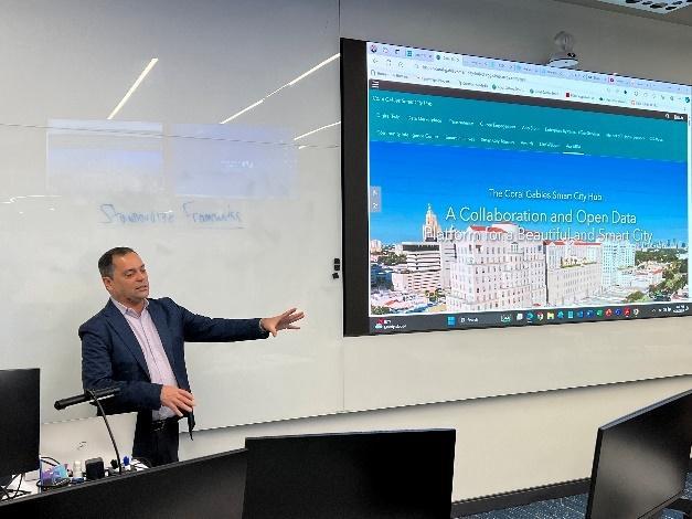 • Research collaboration with FIU for Green Stormwater Infrastructure at the City’s IT Lab campus; Research collaboration with UM on a proposal to build digital twins for modeling/management of infrastructure systems and integrate the research into the Coral Gables Smart City Hub and Digital Twin platforms; Multiple STEM research, education and lab internship partnerships; smart city collaboration initiatives with UM, FIU, FAU, NOVA U, Miami-Dade College, UC Berkeley, IEEE, Cities Today Institute, Smart Cities Council, Dense Networks thinktank, U.S. DOE, DOS, DOC; ARPA-E, Pacific Northwest National Laboratory, NIST, WBAF Smart City Commission, 4Geeks Academy, Beyond Academics, and other organizations. Collaborated with IEEE & NIST developing engineering standards and frameworks for smart cities, emergency management & incident response, and with the GovAI Coalition on AI policies and use cases.