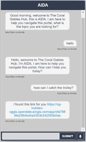 • AI Digital Assistant (AIDA 4.0, aka Coral) public chatbot, which allows residents and visitors to ask questions and submit prompts querying the resources and information on the City’s Website and the Smart City Hub.