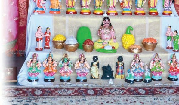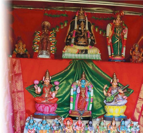 The Hindu festival of Navaratri is celebrated over a nine-day span every fall, typically in October. During the festival, women traditionally have Golu (religious doll displays) set up in their homes and invite friends and family to view them.