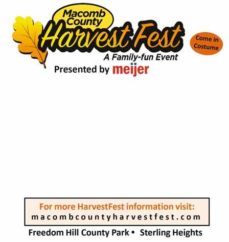 Macomb County HarvestFest: Trick-or-treat stations, hayrides, inflatables, movies, music, magic, princesses, airbrush tattoos, pumpkin patch, pumpkin carvers, games, birds of prey and reptile shows, food drive, food trucks and more, costumes encouraged, noon-5 p.m., Freedom Hill County Park, 14900 Metropolitan Parkway in Sterling Heights, macombcountyharvestfest.com, (586) 419-0332
