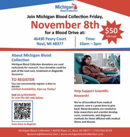 Early voting in Michigan began Oct. 26 and will run through Nov. 3. Voters can submit their ballots between noon and 8 p.m. Thursday and between 8:30 a.m. and 4:30 p.m. Friday through Sunday at the Novi Civic Center, 45175 W. 10 Mile Road. For more election information, visit cityofnovi.org/elections.