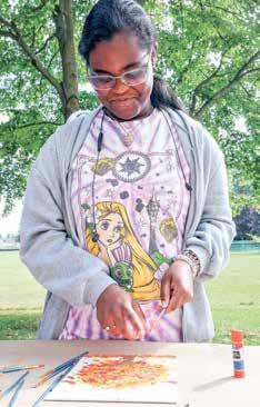 Fifteen-year-old Milan Lovejoy, of Roseville, uses the spatter technique to add fall colors of red, orange and yellow to her painting during the Roseville Public Library fall foliage painting party Sept. 24 for teenagers.
