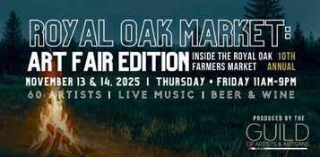 ROYAL OAK — The Royal Oak Market: Art Fair Edition is returning Nov. 13-14 for the 10th year. The Royal Oak Farmers Market will be transformed into an indoor marketplace filled with 60 jury-selected artists, live music, food trucks, and craft beverages. Every purchase supports independent artists.