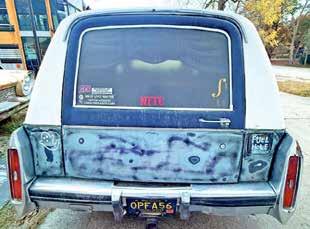 The band added some decals to dress up the hearse that transports the rockabilly band’s instruments to shows.