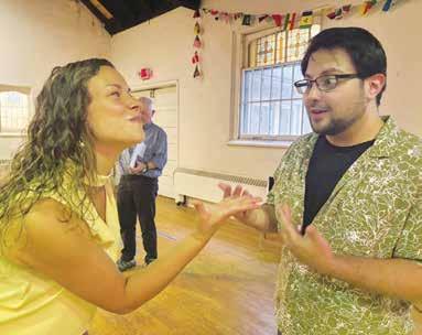 LEFT: Lucia Wylie-Eggert and Ben Blondy rehearse a scene from “Forgotten,” in which they portray Lewis Bradford and his wife, Ella.