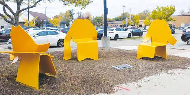 The three works — “Cecil,” the whimsical sea serpentshaped bike rack located the Art Center’s Macomb Place entrance, “Galileo’s Night Vision,” the circular work located at the corner of Main and Market streets and “Conceptual Seats,” Lori Teicher’s interactive giant chairs located around Macomb Place — are currently being restored as part of a $47,300 project.