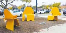 ABOVE: Freshly repainted “Conceptual Seats” sit along Macomb Place. The ongoing restorations to the Lori Teicher sculptures are part of a set of three public art restorations the Anton Art Center is managing with partial funding from the America250MI Committee and the Mount Clemens Downtown Development Authority. Donations for the restoration project can be made on the Art Center’s website at theartcenter.org/restoration.