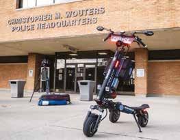 Four electric three-wheeled mobility scooters were recently outfitted for the department and acquired through the 2023 coronavirus state and local fiscal recovery fund. The vehicles are all-wheel drive and capable of reaching speeds of up to 37 mph on a battery that lasts around 12 hours.