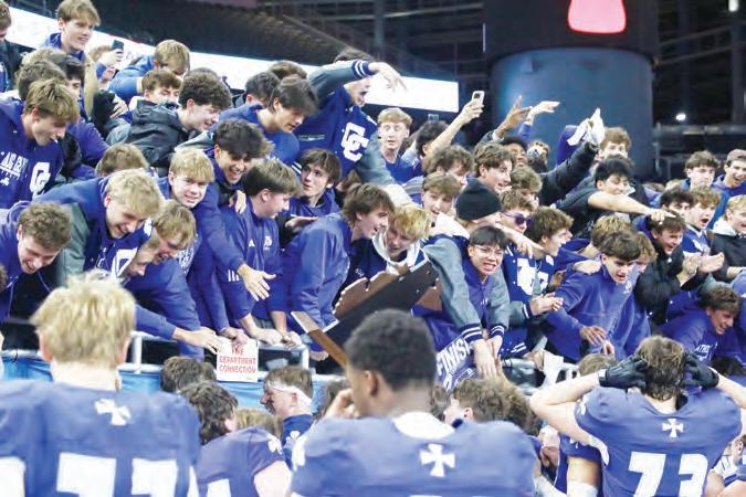Detroit Catholic Central players celebrate after a 42-19 state championship victory over Detroit Cass Tech on Nov 30 at Ford Field. For more photos from the title game, visit candgnews.com/ galleries.