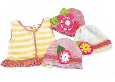 Whether it is putting little skirts on clothing or adding vintage buttons, she tries to make her work stand out. One piece she highlighted is a hat with a little felt flower on top.