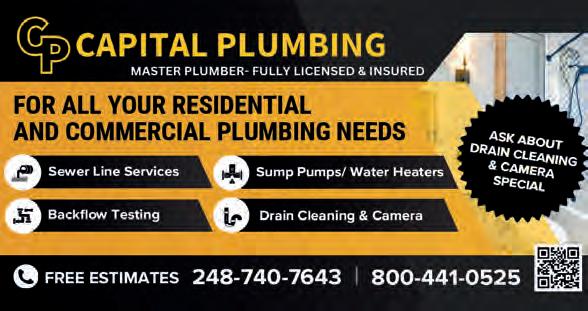 WATERWORK Plumbing.com •DrainCleaning •SewerCamera •WaterHeaters •SumpPumps •BackflowTesting 248-542-8022 SameDayEmergency ServiceAvailable Reliable/Experienced License#8003885