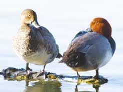 BOTTOM LEFT: Female, left, and male redhead ducks are one species of waterfowl that migrates to Michigan during the winter.