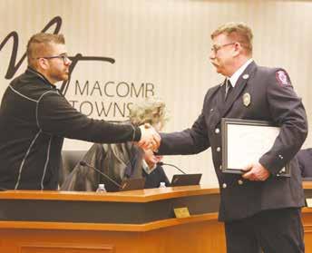 MACOMB TOWNSHIP — The Macomb Township Board of Trustees began its March 13 meeting honoring the work of a firefighter. Sgt. James Peterson, of the Macomb Township Fire Department, was recognized for being the first member of the department to complete the National Fire Academy’s Managing Officer Program. The two-year program aims to