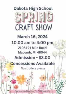 OF THE WEEK • CRIME OF THE WEEK • CRIME OF THE WEEK NEWSWORTHY INCIDENTS REPORTED TO LOCAL POLICE, AS COMPILED BY C & G REPORTERS MARCH 8 Cultural Exchange: Ethnic music and dance, educational cultural displays, food and more, 6-10 p.m., Sterling Heights Community Center, 40250 Dodge Park, facebook.com/CityofSterlingHeights MARCH 16 Board Gaming Meet Up: Free event for ages 14 and older, 10:30 a.m.-4:30 p.m., also April 20, Sterling Heights Public Library, 40255 Dodge Park Road, (586) 446-2665 MARCH 21 BYO (Bring Your Own) Book Club: Part discussion of favorite books, part social hour for adults, 6-7 p.m., also April 18, Sterling Heights Public Library, 40255 Dodge Park Road, (586) 446-2665 APRIL 5 Little Saplings: Storytime, sensory activities, crafts and outdoor exploration for ages 3-5, 3:30-4:15 p.m., Nature Center, 42700 Utica Road in Sterling Heights, register at (586) 446-2710 ONGOING Fish fries: 4-7 p.m. Fridays until March 22 and 3-7 p.m. March 29, St. Blase Parish, 12151 15 Mile Road in Sterling Heights, dine in and carryout, dessert table inside, also curbside with online ordering, stblase.org/fish-fry, (586) 268-2244 • 4-7 p.m. Fridays until March 29, St. Malachy Catholic Church’s Currier Center, 14115 14 Mile Road in Sterling Heights, dine in and carryout, saintmalachychurch.org/fish-fry, (586) 264-1220 • 4-7 p.m. Fridays until March 22, Ss. Cyril & Methodius Slovak Catholic Church, 41233 Ryan Road in Sterling Heights, (586) 726-6911, saintcyrils.church • 4-7 p.m. Fridays until March 22, St. Jane Frances de Chantal, 38750 Ryan Road in Sterling Heights, (586) 977-8080 Widowed Friends dancing: Every Tuesday, doors at 6 p.m. and music from 7-10:30 p.m., Polish Century Club, 33204 Maple Lane in Sterling Heights, RSVP to Victoria at (586) 566-7936 Upton House Museum tours: Visit 1860s Michigan Historical LandLIST YOUR EVENTS IN COMMUNITY CALENDAR — FOR FREE! 1 2 3 Create a CitySpark account using your name, email and password Fill in your event information, click “Review,” then “Submit and Finish” Visit candgnews.com/calendar or use this QR code Events should appear online within 2 hours. We’ll use them in print as space permits. Login information is for account purposes only. ALSO, GO ONLINE THURSDAYS FOR: Questions? Email calendar@candgnews.com “YOUR GUIDE TO THE WEEKEND’S EVENTS!” then click or COMMUNITY CALENDAR mark 1-4 p.m. every Wednesday and second Sunday of month, 40433 Dodge Park Road in Sterling Heights, (586) 446-2495 Morning Movies: Watch “The Whale” (March 14) and “Everything Anywhere All At Once” (April 11), 10 a.m., Sterling Heights Public Library, 40255 Dodge Park Road, (586) 446-2665 Northern Toastmasters: Meets 6:30 p.m. every second and fourth Monday of month, Leo’s Coney Island, 33577 Van Dyke Ave. in Sterling Heights, (248) 828-7481, samcrowl@comcast.net Ice skating: 11 a.m.-8 p.m. Sundays, noon-9 p.m. Mondays-Thursdays, noon-10 p.m. Fridays and 11 a.m.-10 p.m. Saturdays until March 3, Dodge Park, 40620 Utica Road, sterlingheights.gov/1650/ Dodge-Park-Ice-Rink Sterling Speakers Toastmasters: Meetings