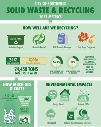 BY KATHRYN PENTIUK kpentiuk@candgnews.comSOUTHFIELD — The Resource Recovery and Recycling Authority of Southwest Oakland County recently released their communities’ solid waste and recycling metrics for 2023, and Southfield’s recycling rate beat the state average.