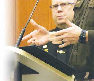 Sgt. Ryan Piszczek of the Macomb County Sheriff’s Office speaks to the Macomb Township Board of Trustees on Feb. 26 about changes to the midnight shift’s effectiveness since he was added as the shift’s sergeant. Trustees approved adding a midnight shift sergeant last June.