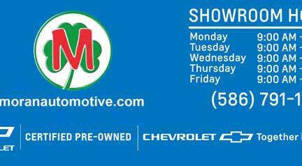 April 3, 2024 Fraser-Clinton Chronicle *Plus title, tax, plates, doc and CVR fees. Vehicles available at time of printing. No Salvage or branded titles. Certain restrictions may apply, see dealer for details. Limited Powertrain Warranty is on certified vehicles from original in-service date and whichever comes first, time or mileage. 2 years or 24,000 miles of scheduled vehicle maintenance is on certified pre-owned vehicles, includes oil and filter changes, tire rotations and multi-point inspections. Sale ends 4/12/2024. 2021 CHEVROLET TRAILBLAZER LT TECHNOLOGY PKG. FOG LIGHTS • LANE KEEP ASSIST • BACK-UP CAMERA STK# C27983 REMOTE START $18,888* 2022 CHEVROLET TRAX LS ALL WHEEL DRIVE CRUISE CONTROL • CHEVROLET INFOTAINMENT STK# CR73269A $17,788* 2021 CHEVROLET TAHOE PREMIER PREMIUM PACKAGE PANORAMIC SUNROOF NAVIGATION STK# C28426 $55,488* 2021 CHEVROLET TRAILBLAZER LT ALL WHEEL DRIVE REMOTE START • 28K MILES STK# C28285 $17,888* 2020 GMC ACADIA SLE HEATED SEATS REMOTE START LEATHER SEATS STK# CR74769A $23,188* 2023 CHEVROLET SUBURBAN Z71 HEATED SEATS PANORAMIC SUNROOF INFOTAINMENT STK# CR74708A $62,488* 2022 CHEVROLET SILVERADO RST CREW CAB 4X4 5.3L V-8 ENGINE BEDLINER HEATED SEATS STK# C28327 $44,188* 2021 CHEVROLET TRAX LT ALL WHEEL DRIVE ONLY 19K MILES • REMOTE START STK# C28330 $18,288* 2022 GMC TERRAIN SLE HEATED SEATS REMOTE START 34K MILES LANE DEPARTURE WARNING STK# C28137 $21,488* 2021 CHEVROLET TRAVERSE RS LEATHER INTERIOR HEATED SEATS CHEVROLET INFOTAINMENT STK# C28332 $30,988* KEYLESS ENTRY LEATHER SEATS • BACK-UP CAMERA • NAVIGATION STK# C28133 $28,888* 2021 CHEVROLET BLAZER RS REMOTE START 2021 GMC CANYON ELEVATON REMOTE START • 18” BLACK WHEELS 16K MILES STK# C28501 $32,188* 2022 CHEVROLET TRAILBLAZER RS ALL WHEEL DRIVE • HEATED SEATS COLLISION ALERT STK# C28356 $23,488* 2019 CHEVROLET SILVERADO RST REMOTE START 5.3L V-8 ENGINE 4X4 • HEATED SEATS STK# CR73897A $33,888* 2021 CHEVROLET SILVERADO 1500 HIGH COUNTRY LEATHER HEATED / COOLED SEATS • 25K MILES STK# C28450 $45,488* 2021 CHEVROLET SILVERADO RST CREW CAB 4X4 KEYLESS ENTRY BACK-UP CAMERA • POWER SEATS • TOW PKG. STK# C28207 $33,788* 0278-2414
