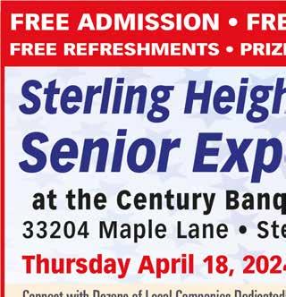 Senior expo: Meet experts about medicare, assisted and independent living, mobility solutions, veterans benefits, travel, financial planning and more, plus free admission, health screenings, refreshments, prizes and giveaways, 10 a.m.-1 p.m., Century Banquet Center, 33204 Maple Lane in Sterling Heights, seniorexpousa.com