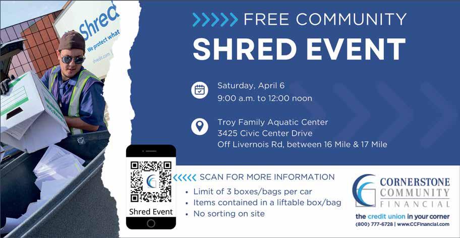 Our leaders were able to successfully lobby and fnd $10 million for the additional sound walls along I-75 to assist our neighbors in getting back their lost peace and quiet. We need the same herculean efort by all in this city to be able to support a new library. T.S. Eliot said: “Te very existence of libraries afords the best evidence that we may yet have hope for the future of man” I believe that elegant truth sincerely when it comes to the future of Troy.