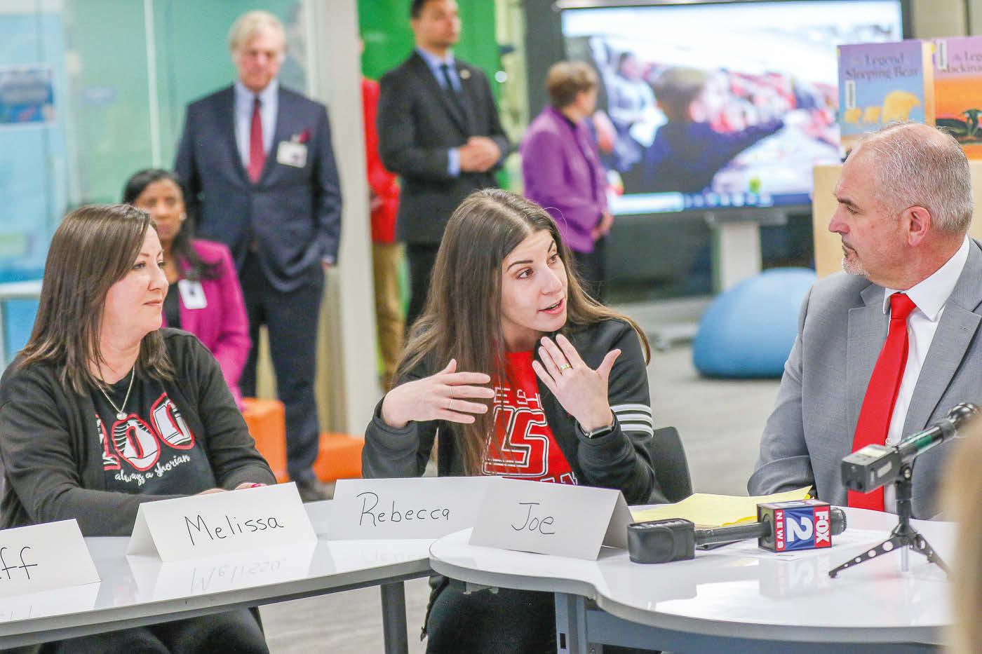 Participants included parent Melissa Florek, student Lauren Maciejewski, teacher Debbie Peacock, teacher Kim Rueger-West, social worker Rebecca Asni, interventionist Billie Wilson, alternative education administrator Jeff Lip and teacher Dave Warehall. DiPonio started off by commending Whitmer for her budget and what it did to help the students in the district.