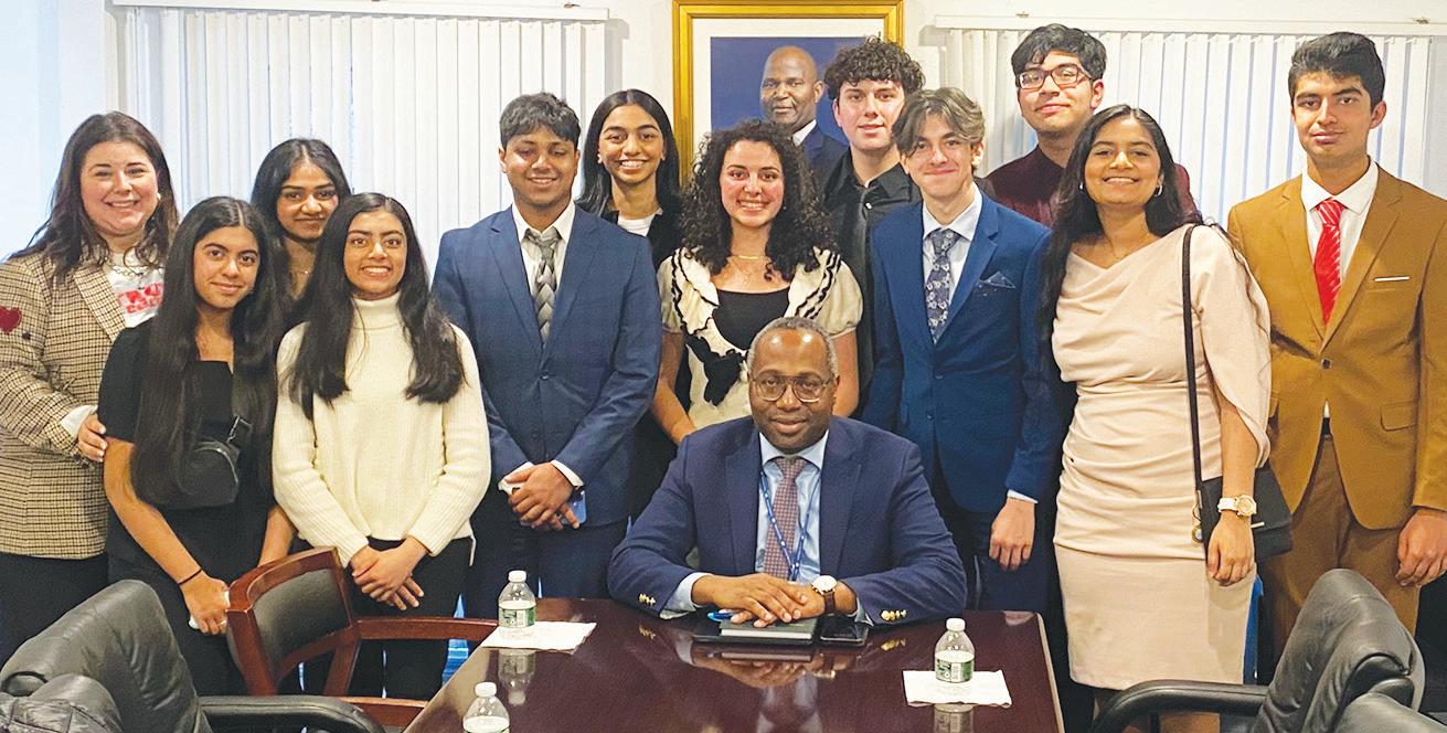 Those receiving recognition included Bhavisha Santhosh Kumar and Lana Fargaly (first place, Best Delegate - Gavel Award); Ahmad Bokhari, Bhavisha Santhosh Kumar, Henrik Karstensen, Kate Berghea, Lana Fargaly, Maya Al-Qas Hanna, Nishi Bergi, Zahra Rahman and Zaid Iftikhar (second place, Superior Delegate Award); Jude Carras-Restum, Kashvi Mohan, Rachel Jose, Rudra Jariwala, Sara Yousufuddin, Shalini Srinivas, Shraddha Shoraff and Shriya Doddaguni Harish (third place, Outstanding Delegate Award); Areeb Raed, Iris Kerges, Jonathan Pinon and Nivedha Suresh (fourth place, Excellent Award); and Shraddha Shoraff (fifth place, Position Paper & Book Award).