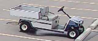 Surveillance cameras captured the silver and blue cart as it was loaded onto the trailer of a white four-door pickup truck.