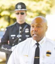 ABOVE: The Warren Police Honor Guard raised the flags and gave a 21-gun salute at a May 7 event for Police Week at the Warren Fraternal Order of Police Lodge 124. LEFT: Warren Police Commissioner Eric Hawkins spoke at a May 7 event for Police Week at the Warren Fraternal Order of Police Lodge 124.