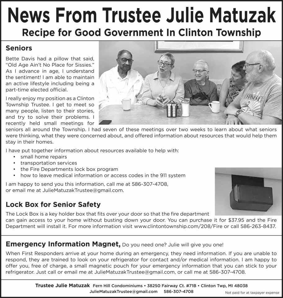 giveaways and gifts, health and wellness screenings, prescription drug disposal, seminars, vendors, refreshements, photo booth and admission, 10 a.m.-1 p.m., Macomb Intermediate School District, 44001 Garfield Road in Clinton Township, clintontownship.com/162/Senior-Center