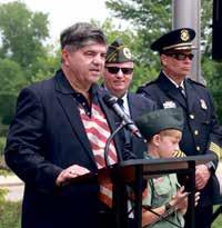 The ceremony included placement of a memorial wreath and music. “The StarSpangled Banner” was performed by Pete Powinski and Ken Kazmierski. The Pledge of Allegiance was led by Boy Scout Troop No. 156 and Assistant Scoutmaster Raymond Jahn, of Trail Life USA Troop MI 1776, alongside the Rev. Jason Jackson, of Brookside Missionary Baptist Church. Dr. Philip Krist, of Lakeside Assembly of God, delivered the invocation.