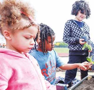 With guidance from Center Line Public Schools Superintendent Joseph Haynes, a number of students get ready to secure vegetable plants in the Victory Garden.