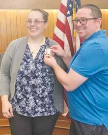After six and a half years with the Lathrup Village Police Department, Amanda McNeill, 32, is now donning a new uniform. She was sworn into office as a Farms public safety officer July 8 by Assistant City Manager/City Clerk Derrick Kozicki, as her parents, mother-in-law and husband, Mike McNeill, looked on. July 8 was also her first day on the job.