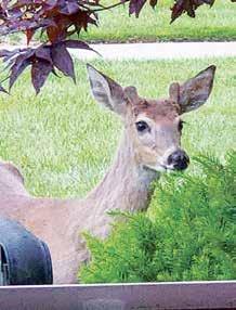 LEFT: “Yew look delicious,” thinks this deer as it approaches a shrub at a home in metro Detroit.
