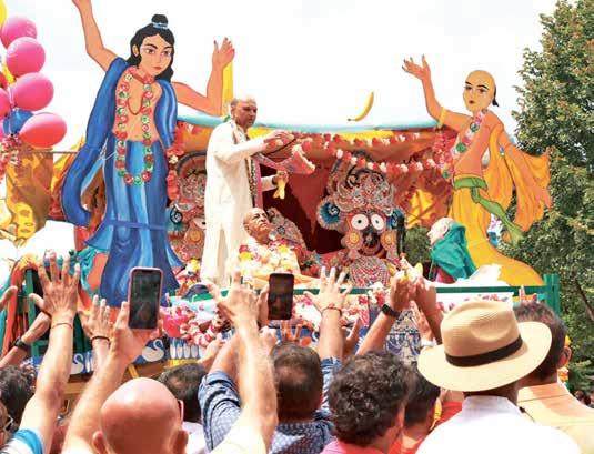 During the festival, the Hindu gods Lord Jagannath, Balarama and Subhadra are taken through the streets in a 40-foot-tall chariot “so that everyone can have the fortune of seeing them.”