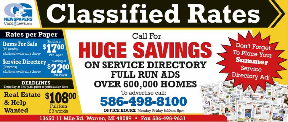 To view more Community Calendar and to submit your own, use the QR code or visit candgnews.com/ calendar. To advertise an event, call (586) 498-8000.