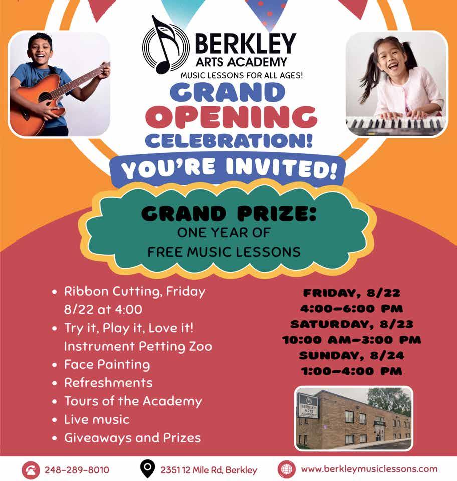 FRANKLIN/BINGHAM FARMS — The Judaic Studio is hosting its grand opening 5:30-7 p.m. Aug. 10 at 32731 Franklin Road in Franklin. The event’s honored guest is Or Levy.