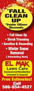 DOLL'S LANDSCAPING FALLCLEAN-UPS! Shrub&Tree-Trimming, Planting,Removal.Mulch, SodInstallation,Pavers, Garden/RetainerWalls, PorchSteps,Raise Backyards/DrainTiles, Powerwashing/Sealing, Powerrake,Aeration, Seeding,DebrisRemoval 586-634-0033