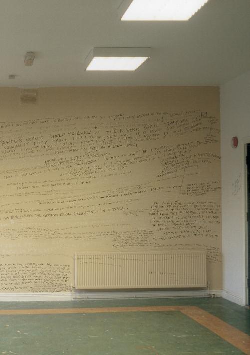 One direction we could imagine would be the possibilit y of constructing longer term engagements where creative alliances bet ween ar tists and the communit y might form in ways that could transcend the existing constraints and determining parameters of the residency programme It is also possible to imagine extending and developing the function of studio 468 as a friendly base for an orientation to collaborative work For example, emerging ar tists at both graduate and undergraduate level might join their counterpar ts in the youth and communit y development sector. In this way studio 468 could be identified and known for providing an introductor y hub as well as an established base for engaged practice. The studio 468 residency is a place where those that have cast a public gaze inwards and those that have returned a private gaze out wards have met and looked each other directly in the eye What now are the conditions for dissolving some of the remaining misgivings and uncer tainties?