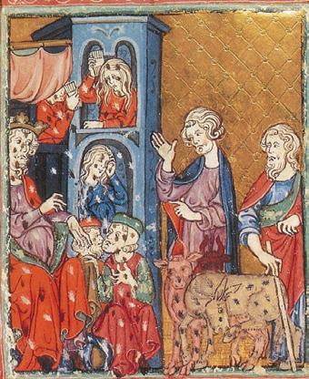 On the 14th of Nisan, Jews slaughter the Paschal lamb and paint their doorposts with its blood.