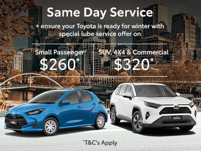 *OfferisavailableatChadstoneToyota,1547DandenongRoad,Oakleighforalimitedtimeonlyuntil FridayMay31st,2024.ServiceneedstobebookedandcompletedatChadstoneToyota.Thisservice offerisalubeinspection(oilandfilterreplacementanda30pointinspection)notalogbookservice. ThisofferdoesnotapplytoTSAcustomers.Additionalchargesmayapplyfordieselorpetrolturbo variantsorthosethatrequiresyntheticoils.LMCT8169