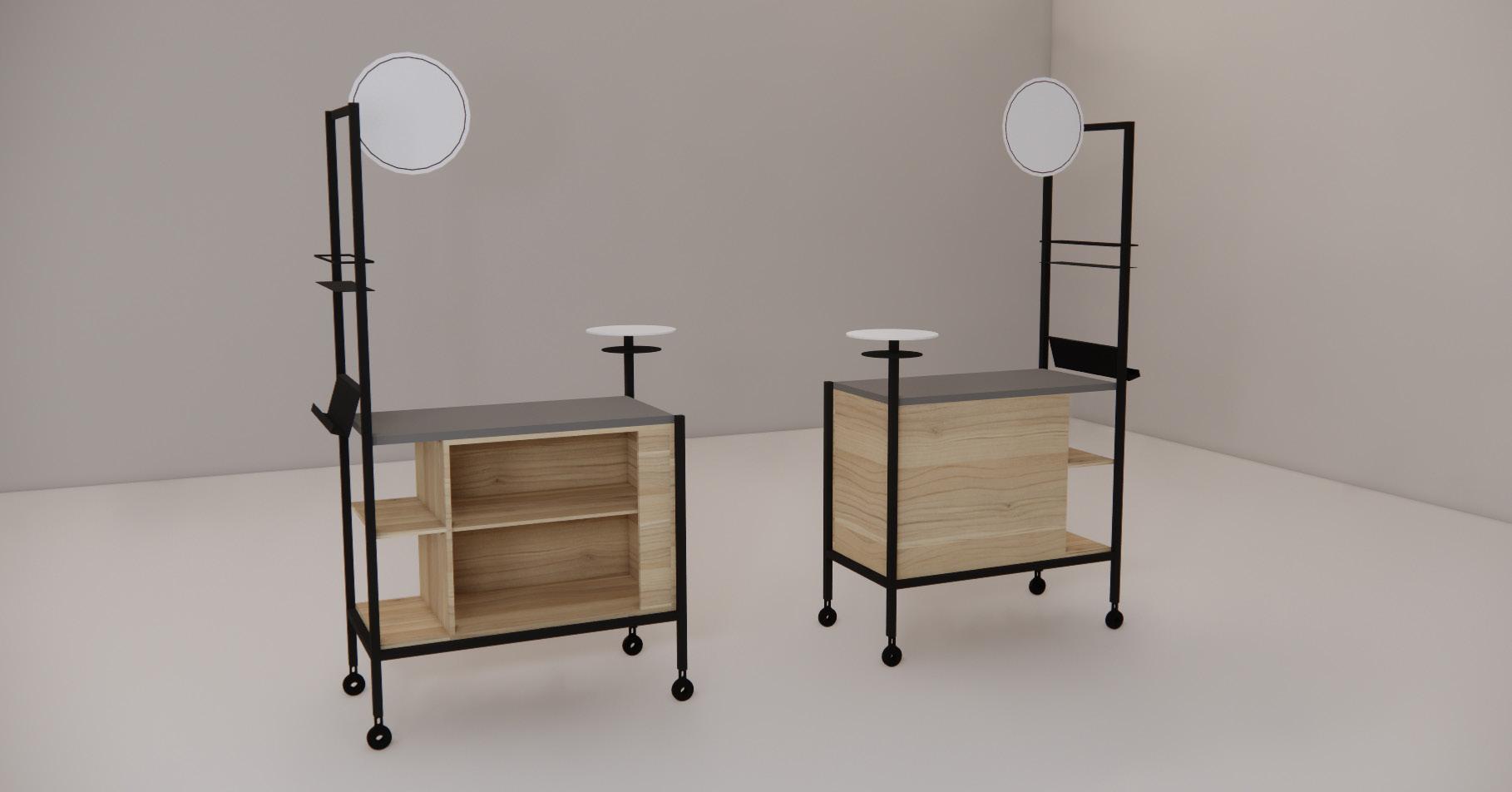 • Accessories available: laminated square display, personalized furniture back panel, round nesting table