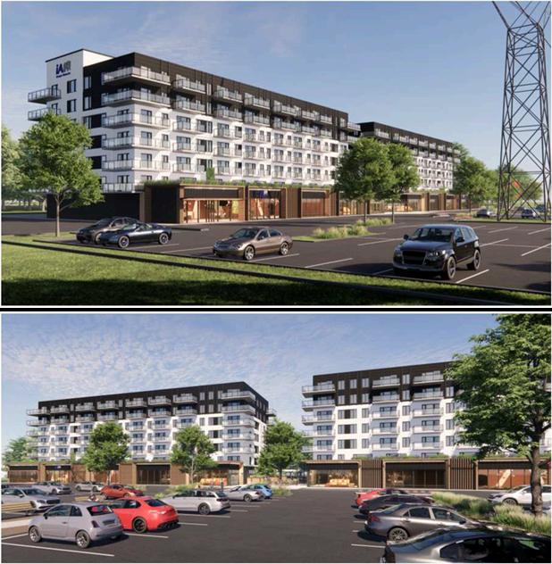 Revêtement extérieur composé principalement de brique et de revêtement métallique en accord avec l’esprit du projet d’ensemble