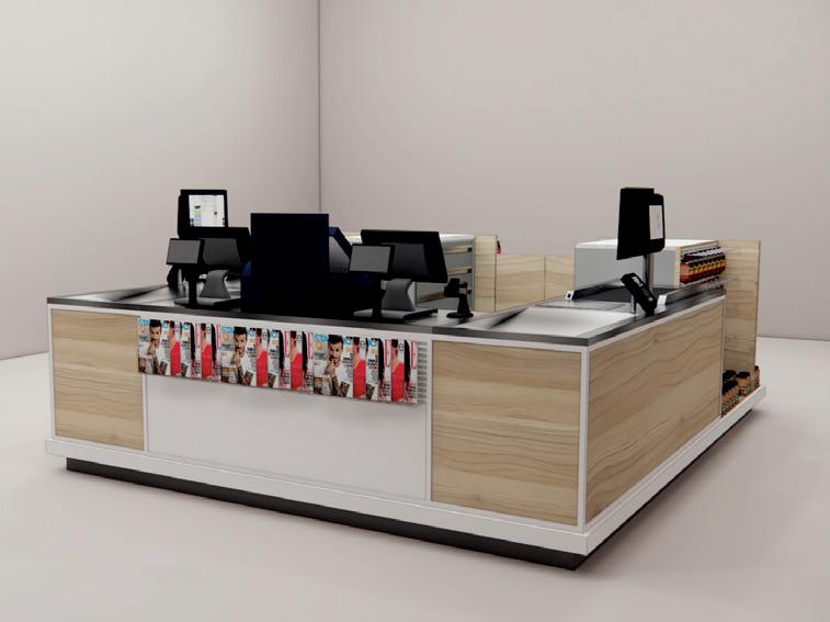 Optimized furniture solutions designed to support efficient, intuitive, and seamless checkout experiences in small-format and convenience stores.