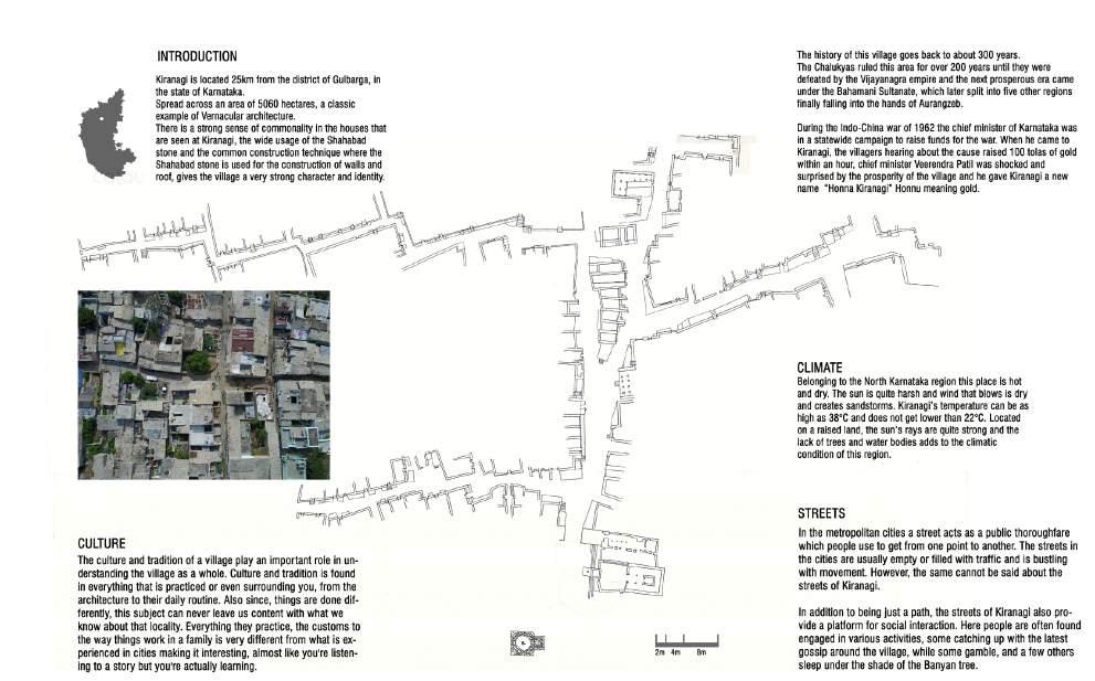 RSP of a village named Kiranagi in Gulbarga, Karnataka. Study was related to learning vernacular, typology of built form and spaces of a dry arid region. Sociology and the life style of the village community.