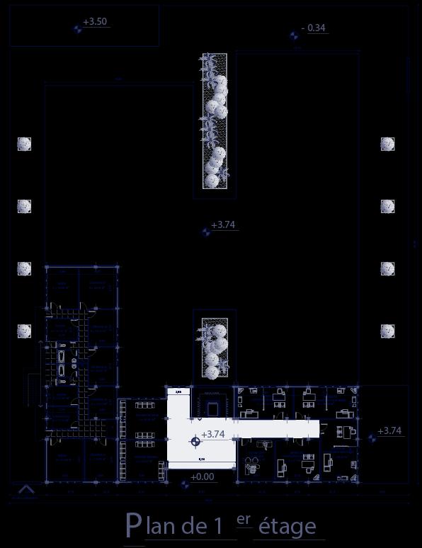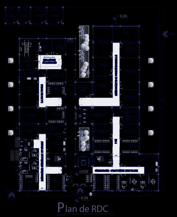 l'ensemble du projet est inscrit en monobloc regroupant tous les services. sanitaire exigés, connectés entre eux sous formes de groupes fonctionnel distincts.