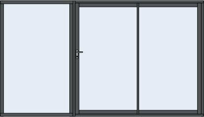 Alu schuifraam 250 x 227 cm H en 2 vaste alu ramen 50 x 227 cm H