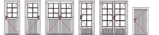 1 dubbele ½ glasdeur, 5 vleugelramen