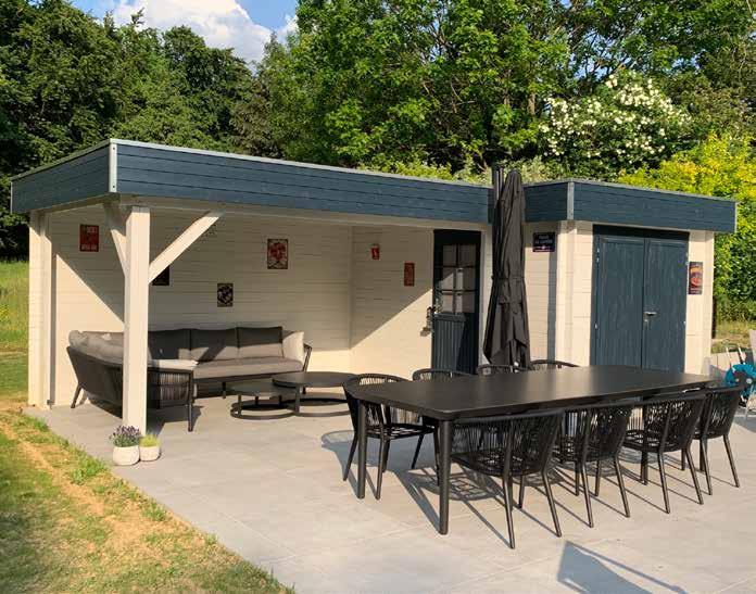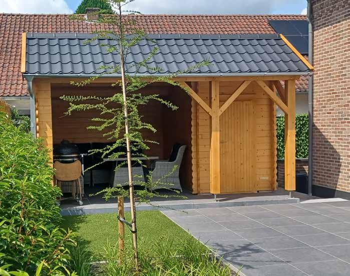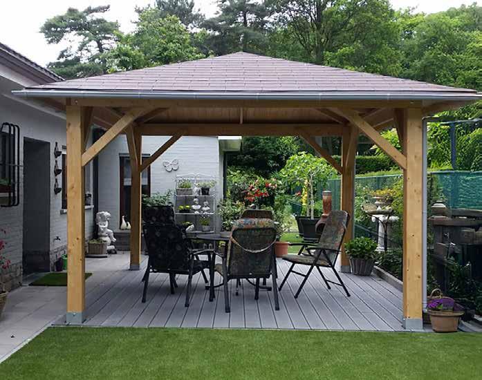 • Terras uitgevoerd met drukgeïmpregneerde balken 58 x 58 mm