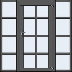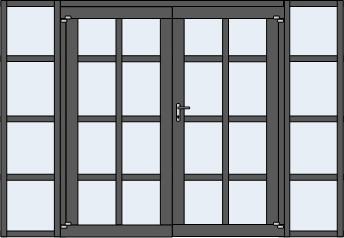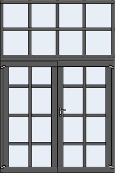 dubbele deur met 3/4 glas, 2 vaste ramen en 2 vleugelramen