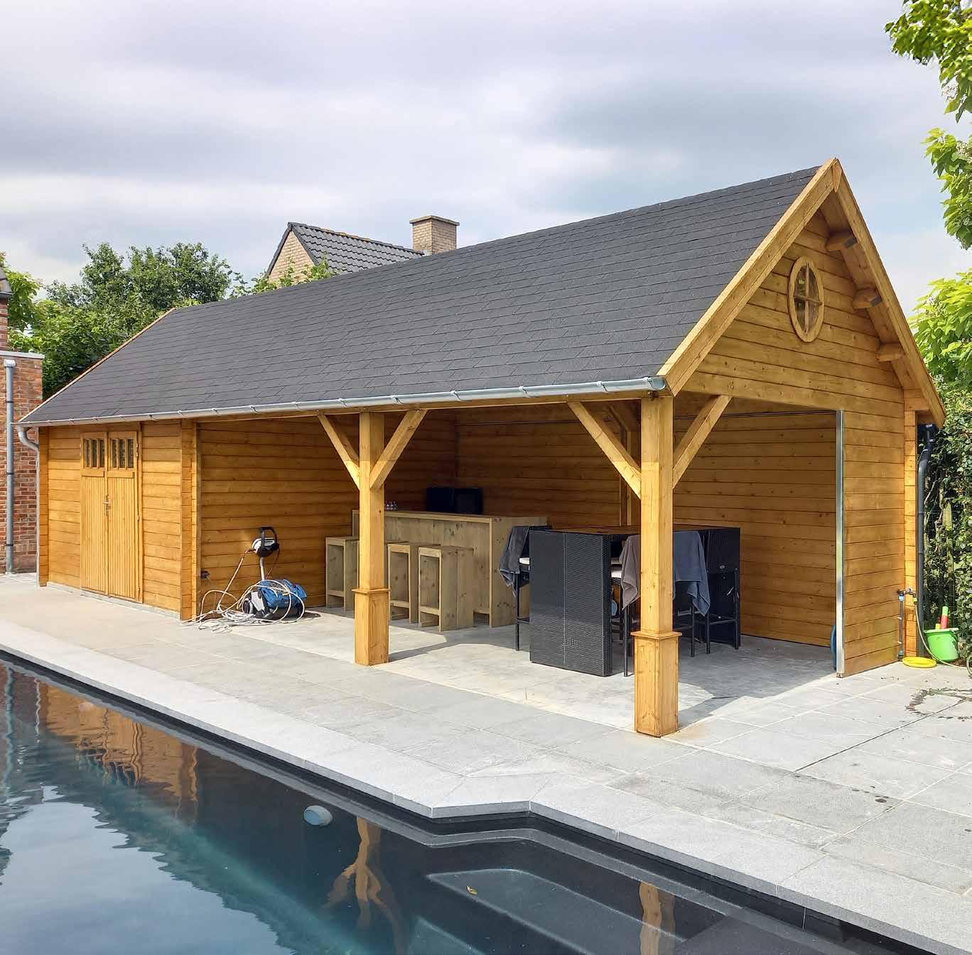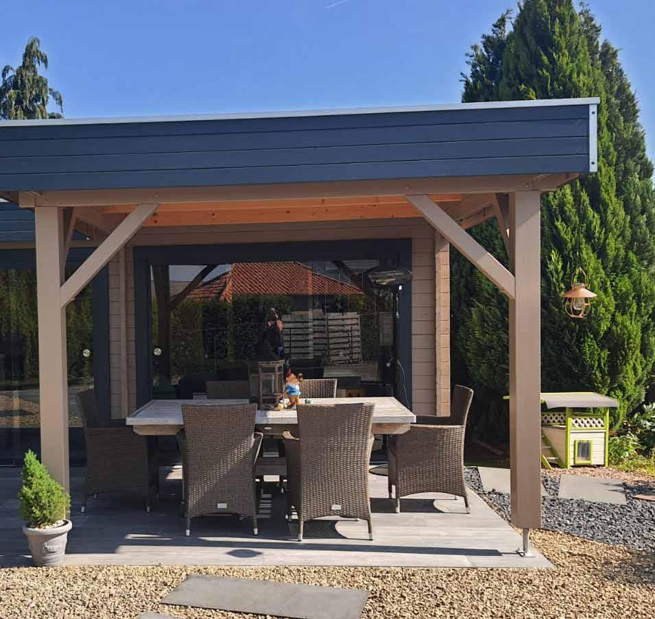 Wij voorzien onze houten tuinconstructies van een zeer stevige dakconstructie die perfect het aanleggen van een extensief groen dak mogelijk maakt.